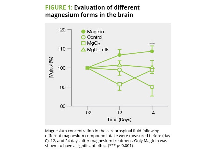 Um estudo randomizado, duplo-cego e controlado por placebo, realizado em 2015 com 44 participantes com comprometimento cognitivo leve (com idades entre 50 e 70 anos) que receberam suplementação diária de 2 gramas de treonato de magnésio, mostrou, após 3 meses, que seus cérebros reverteram o envelhecimento em uma média de 9,4 anos.