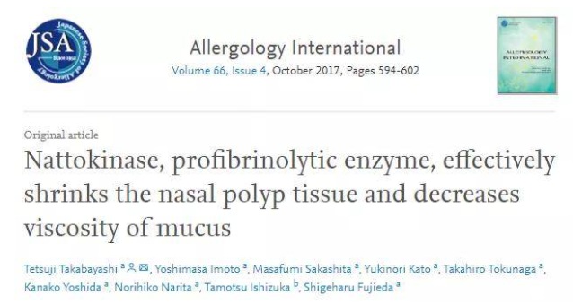 A inflamação crônica leva ao depósito excessivo de fibrina na mucosa nasal, um dos fatores que causam sinusite crônica e também promovem a formação de pólipos nasais. Resultados de pesquisadores japoneses mostram que a nattokinase pode degradar a fibrina, reduzindo efetivamente o tecido dos pólipos nasais. Também foi constatado que a viscosidade do muco nasal e do escarro de pacientes com sinusite crônica e asma, respectivamente, foi significativamente reduzida após incubação em solução de nattokinase.